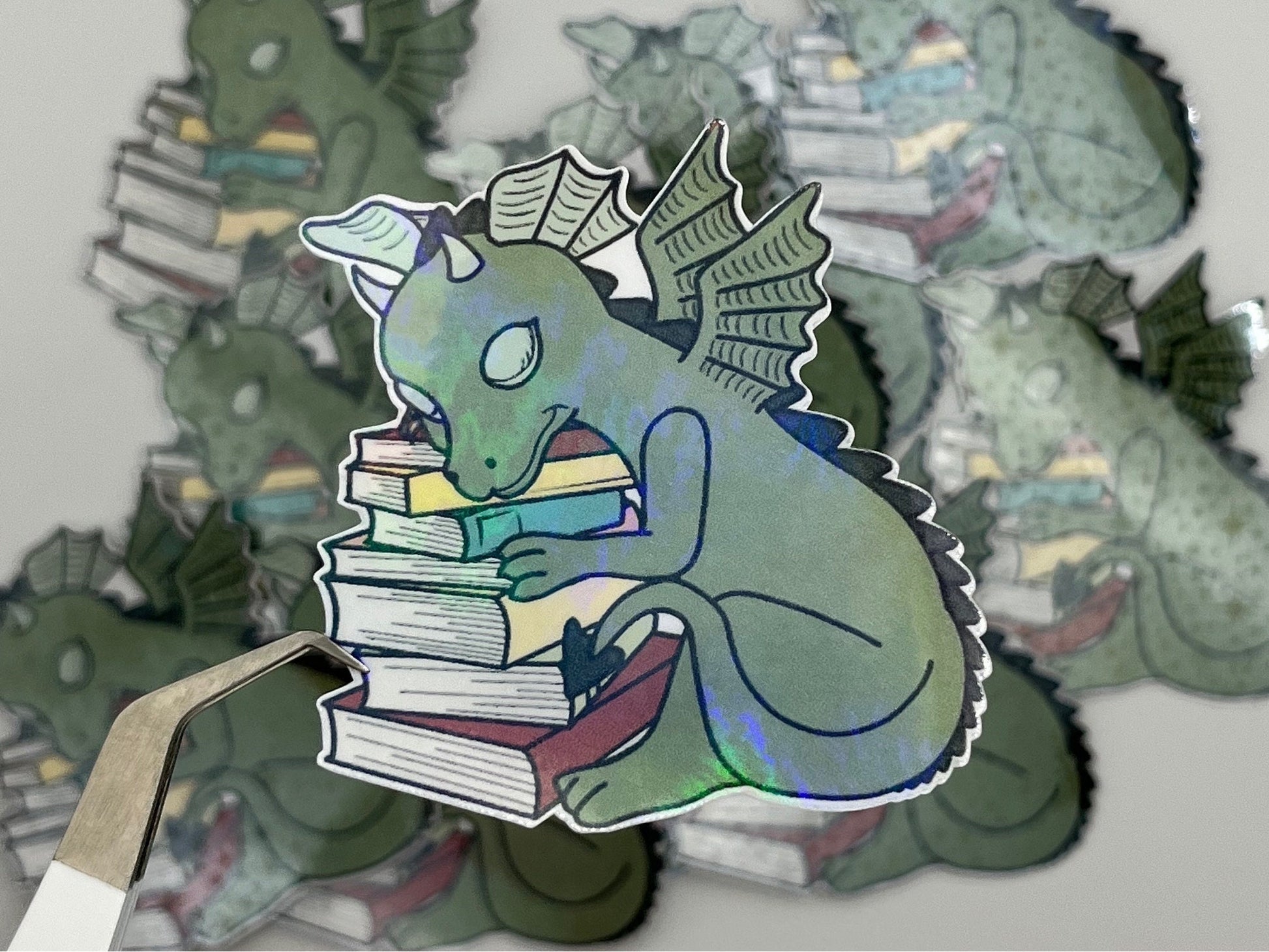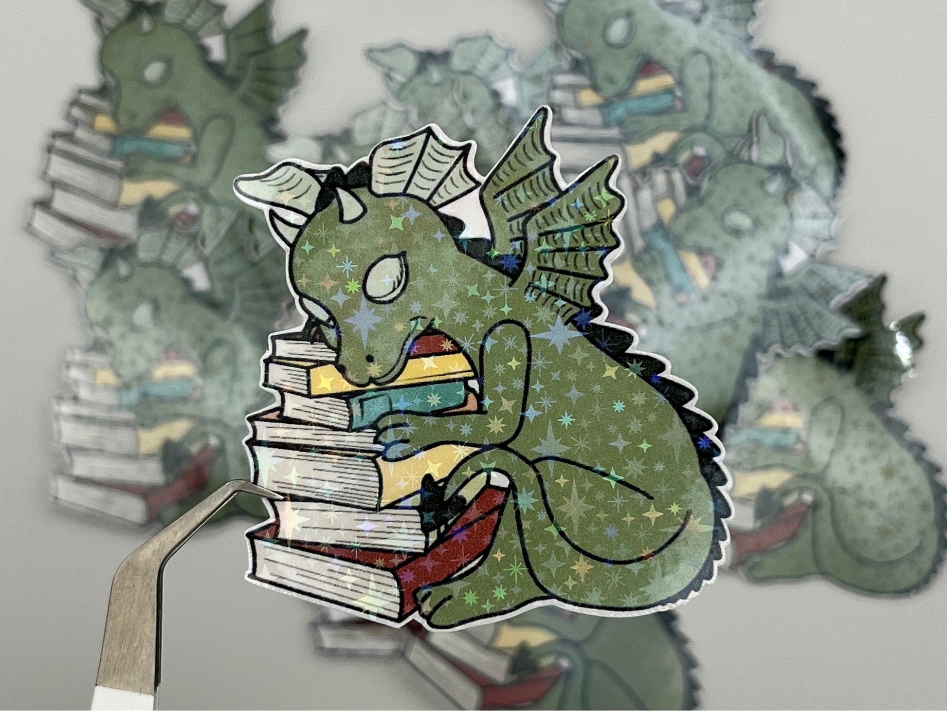 Dieser Sticker ist perfekt für alle, die sich immer wieder dabei ertappen, mehr Bücher zu kaufen als sie lesen zu können und in sich selbst öfters mal einen Bücherdrachen wiedererkennen