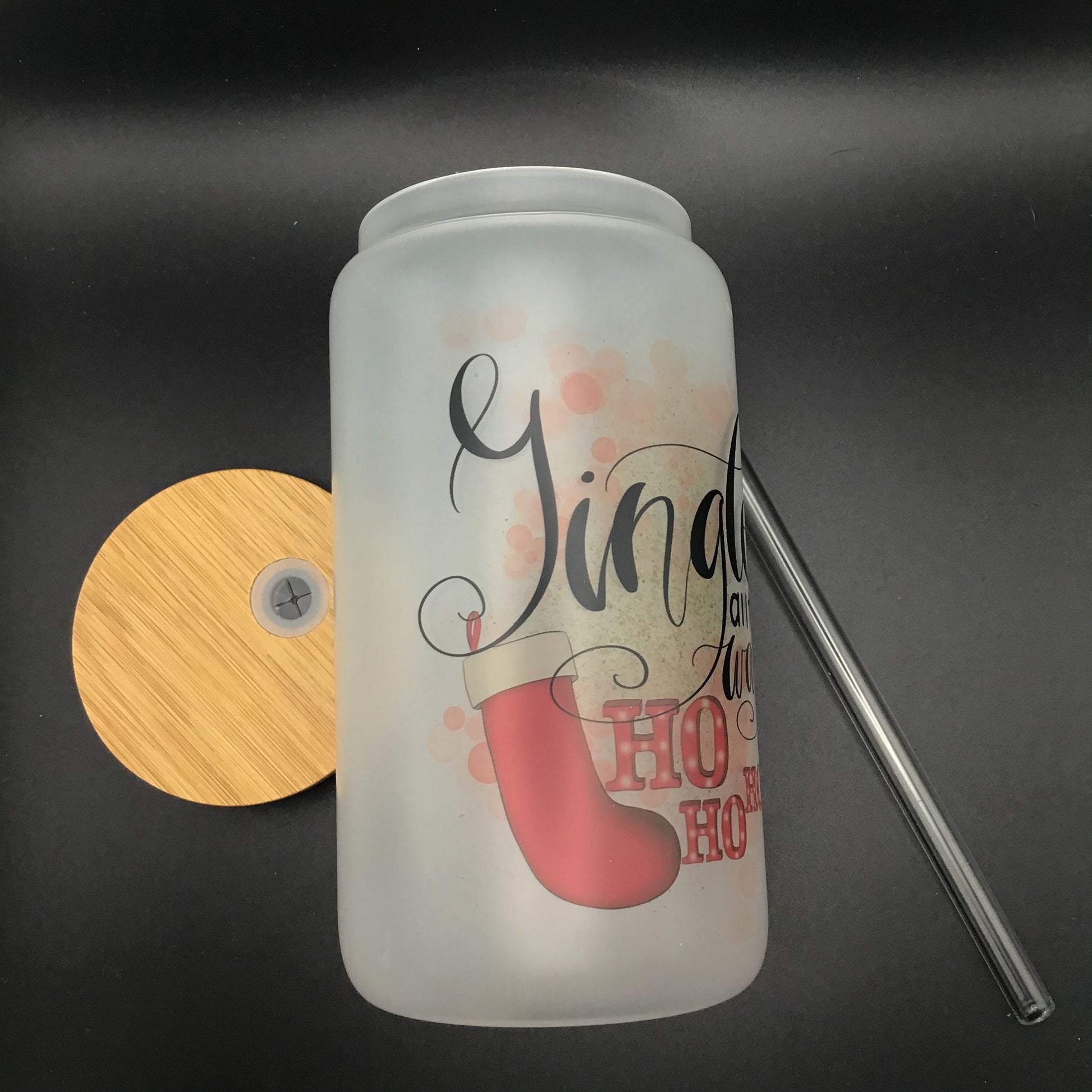 Jingle all the way, ho ho ho, Frosted Glass Tumbler with lit and straw, Christmas Art Merry Christmas, Heiß- und Kaltgetränk